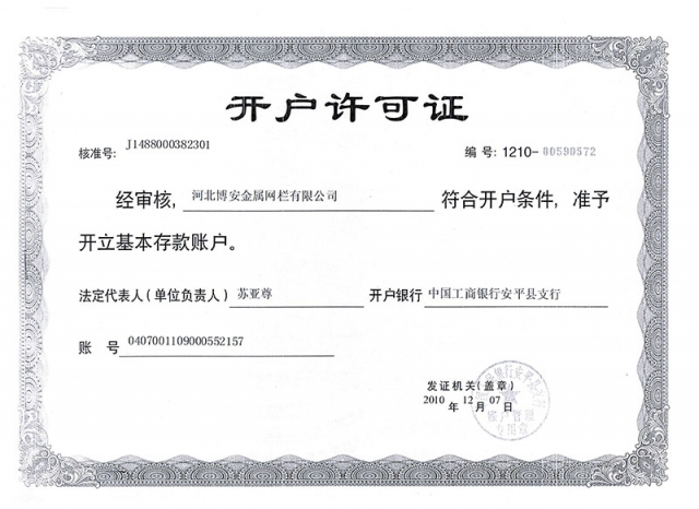 戶名:河北博安金屬網(wǎng)欄有限公司